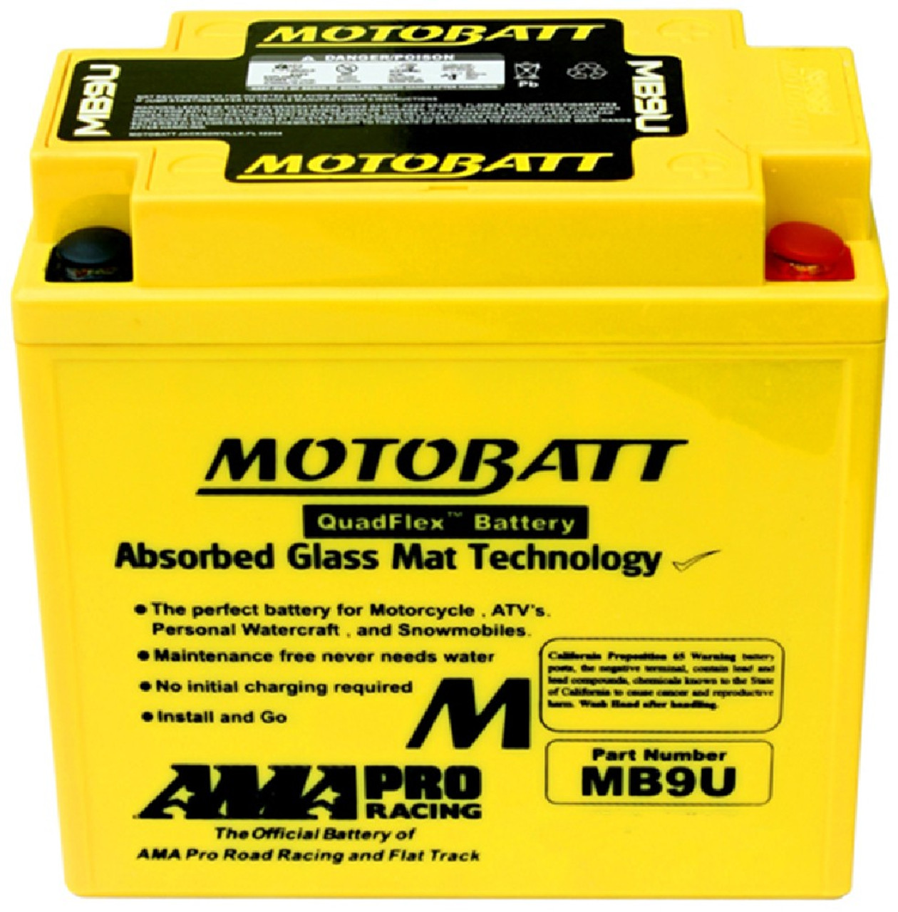 Powersports enthusiasts are all about get-up-and-go action! Motobatt batteries exemplify the powersports lifestyle. Simply install and go. Motobatt batteries without any initial cranking required. Once installed, you don't have to worry about acid leaks or spills because Motobatt batteries come sealed from the factory. You never have to fill or top-off a Motobatt battery.